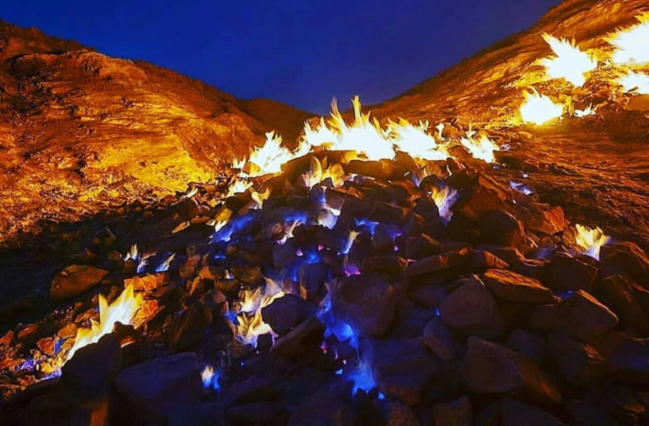 این کوه در منطقه زاگرس و رامهرمز واقع شده و با نامی که دارد، به معنای “آتشین” است؛ زیرا همیشه در حال سوختن است و می‌توانید شعله‌های آتش را بر روی آن ببینید. این اتفاقات به دلیل تصاعد گاز گوگرد رخ می‌دهند و در شب مناظر بسیار جذابی را به وجود می‌آورند.